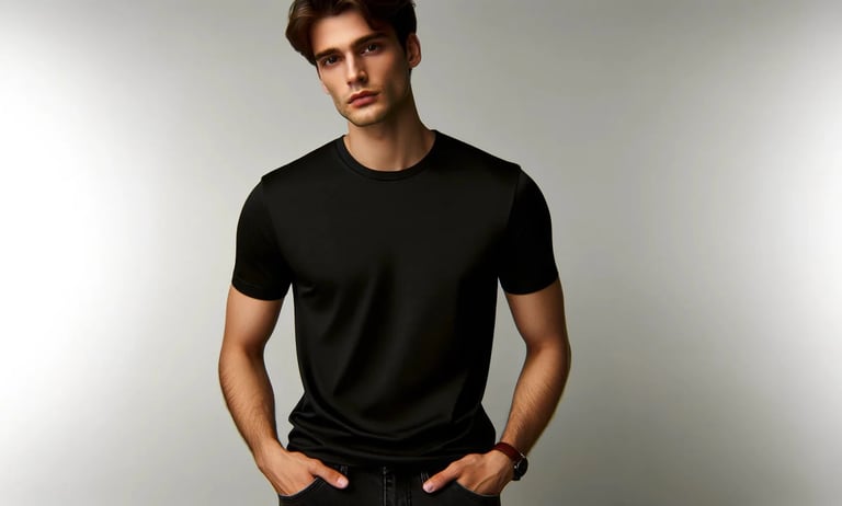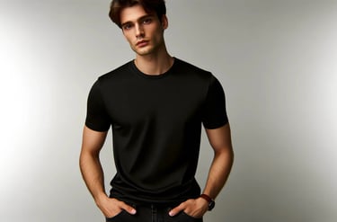 Ajusté là où il faut pour mettre en valeur les épaules, les pectoraux et les bras, tout en offrant une légère aisance au niveau du ventre afin de masquer les imperfections et d'assurer une élégance maîtrisée.